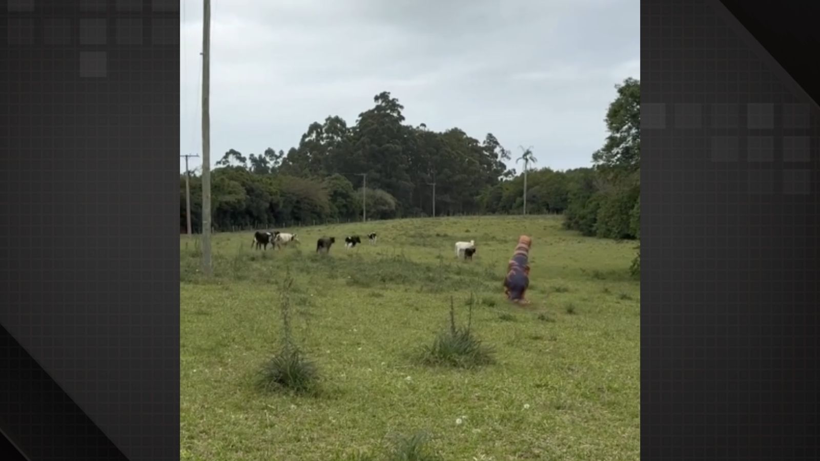 Cena divertida em sítio gaúcho viralizou após vacas reagirem à trollagem inesperada