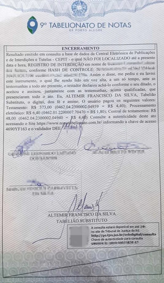 Testador, que não quis se identificar, disse que não está bem de saúde e não tem com quem deixar suas coisas