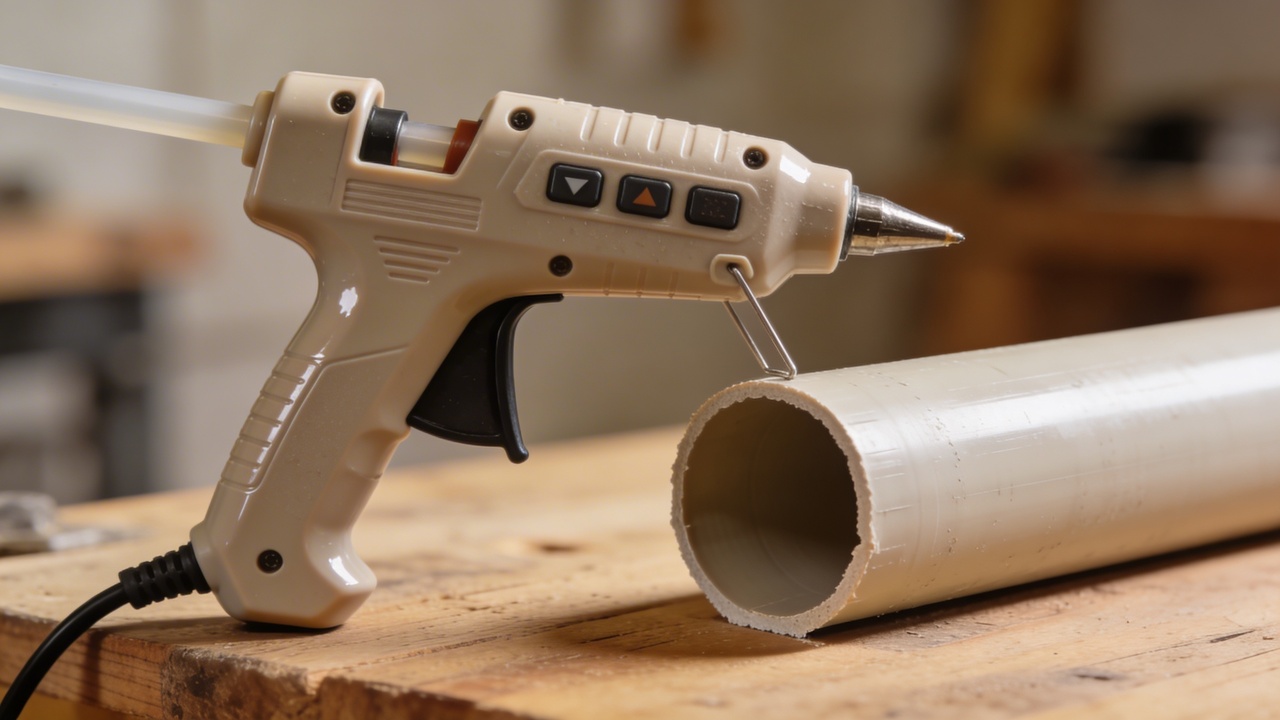 A ideia do cabo de martelo com cano de PVC é simples: o cano é escolhido com um diâmetro que permita encaixe adequado na mão e compatibilidade com o olho da cabeça do martelo. Em seguida, a parte interna do tubo é preenchida com cola quente, aplicada diretamente com a pistola, criando um “núcleo” sólido depois de endurecida.