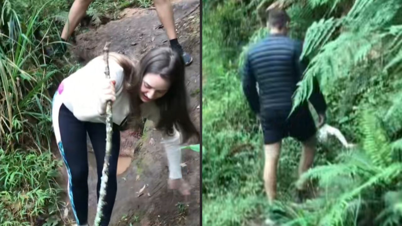 Irmão ri da queda da irmã, mas destino prepara surpresa em trilha; veja vídeo
