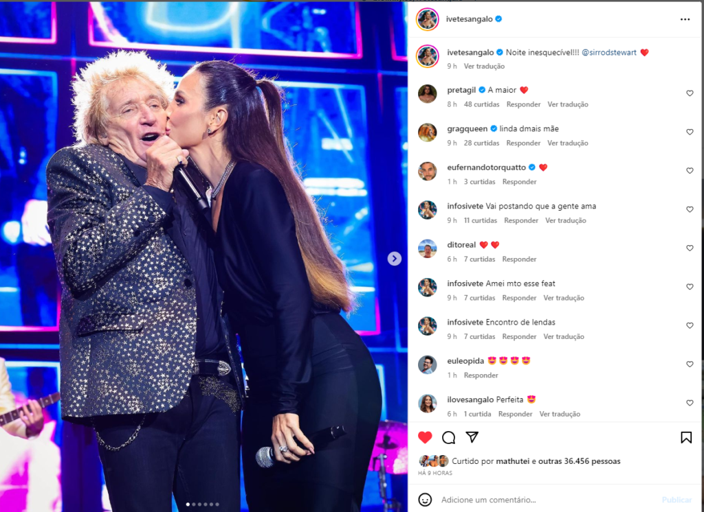Ivete Sangalo celebra show com Rod Stewart: ‘Noite inesquecível’