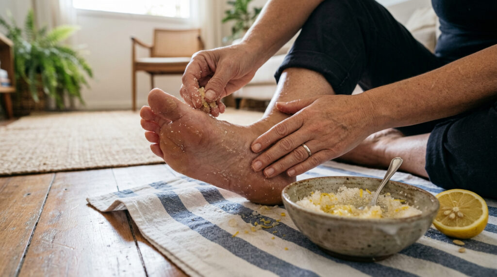 Mistura simples com açúcar e limão promete esfoliação profunda e pés mais suaves em poucos minutos