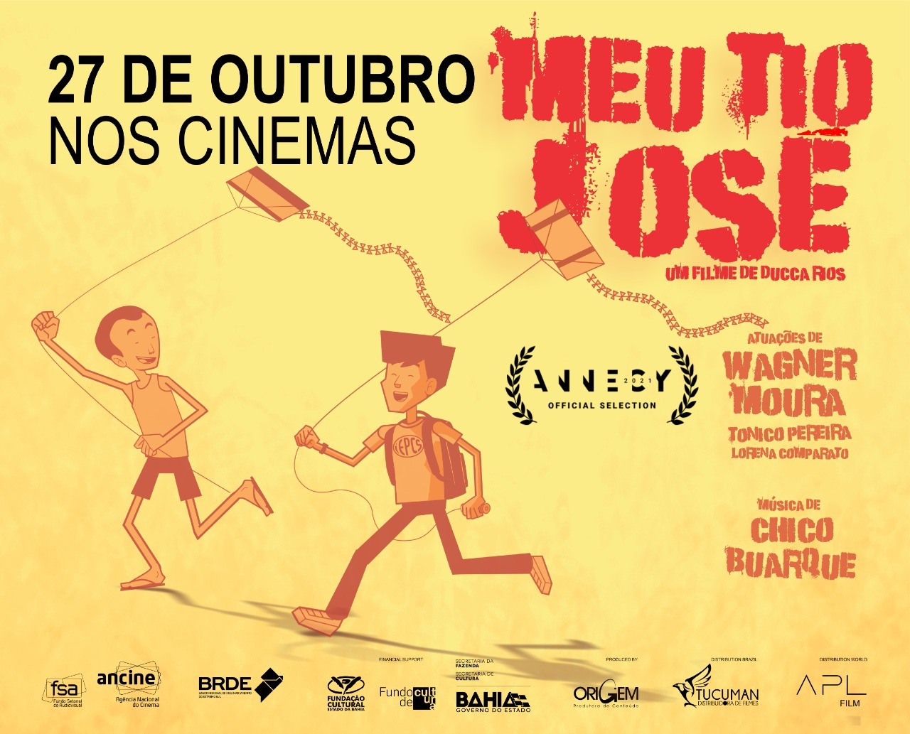 O Longa “Meu Tio José”, animação baseada em fatos reais que conta a história familiar de um ex-guerrilheiro assassinado na ditadura, tem estreia nacional marcada para o dia 27 de outubro no circuito independente, em 14 capitais brasileiras: Rio de Janeiro, São Paulo, Belo Horizonte, Brasília, Goiânia, Salvador, Maceió, Recife, Fortaleza, João Pessoa, Teresina, Palmas, Manaus e Porto Alegre.