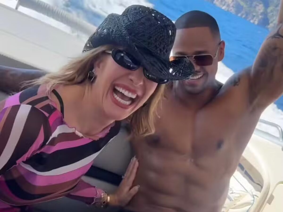Lore Improta e Léo Santana estão curtindo dias especiais na Itália ao lado de amigos. Durante um passeio de barco, a dançarina compartilhou um vídeo divertido em que aparece passando óleo bronzeador no abdômen definido do marido. O cantor entrou na brincadeira, enquanto Lore escreveu em tom descontraído: “Deixa ela”.