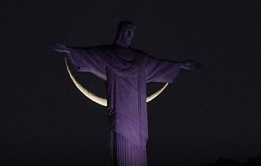 Lua 'abraça' o Cristo. Reprodução: Ari Kaye.