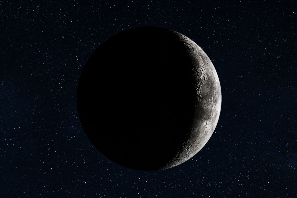 Apenas uma parte menor da face iluminada do astro está visível, formando um desenho que lembra uma letra “C” no céu