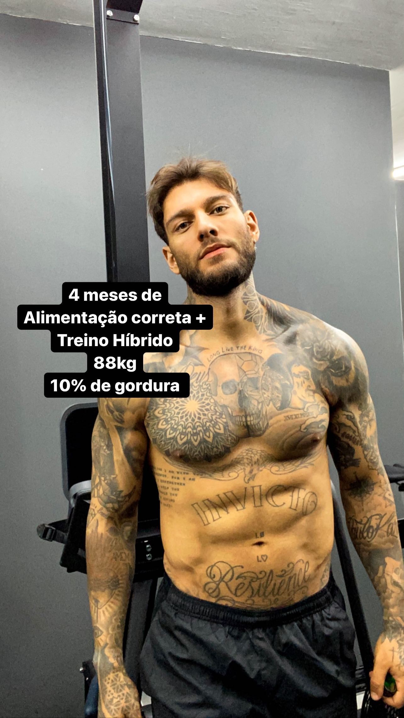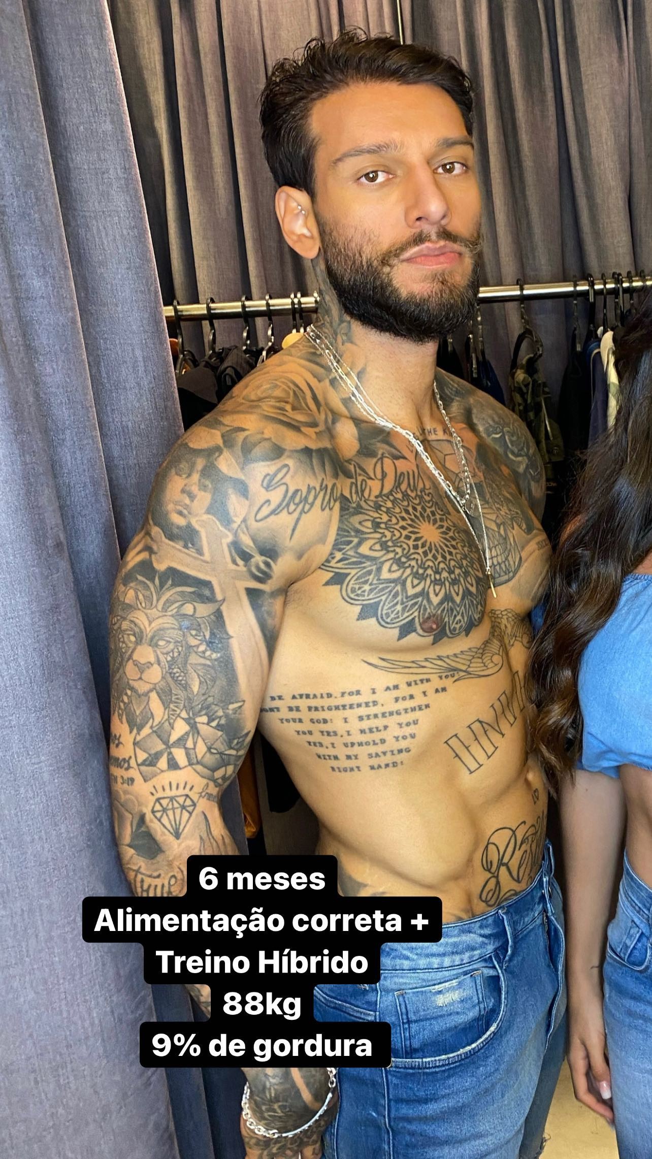 O cantor mostrou como estava seu corpo na época da lesão, quando tinha 92 kg e entre 15% e 16% de gordura corporal. Ele, então, mostrou o resultado após três meses (com 88 kg e 12% de gordura corporal), quatro meses (88 kg e 10% de gordura), até chegar aos resultado de oito meses depois (e seu shape atual), com 88 kg e 9% de gordura corporal.