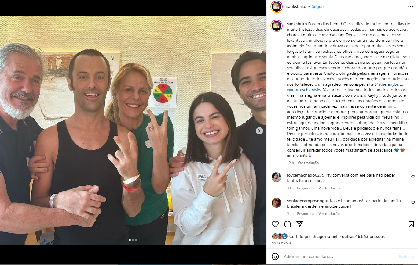 “Vocês não tem noção como tudo isso nos fortaleceu .. um agradecimento especial a @sthefanybrito @igorraschkovsky @ksbrito .. estivemos todos unidos todos os dias .. na alegria e na tristeza .. como diz o Kayky .. tudo junto e misturado .. amo vocês e acreditem .. as orações e carinhos de vocês nos uniram cada vez mais nesse corrente de amor .. agradeço de coração e demorei para postar porque queria estar no mesmo lugar que ajoelhei e implorei pela vida do meu filho .. estou aqui de joelhos agradecendo .. obrigada Deus .. meu filho tbm ganhou uma nova vida .. Deus é poderoso e nunca falha .. Deus é perfeito .. meu coração mais uma vez está explodindo de felicidade .. te amo meu Pai .. obrigada por acreditar na minha família .. obrigada pelas novas oportunidades de vida ..queria conseguir abraçar todos vocês mas sintam se abraçados 💙❤️ amo vocês”, finaliza.