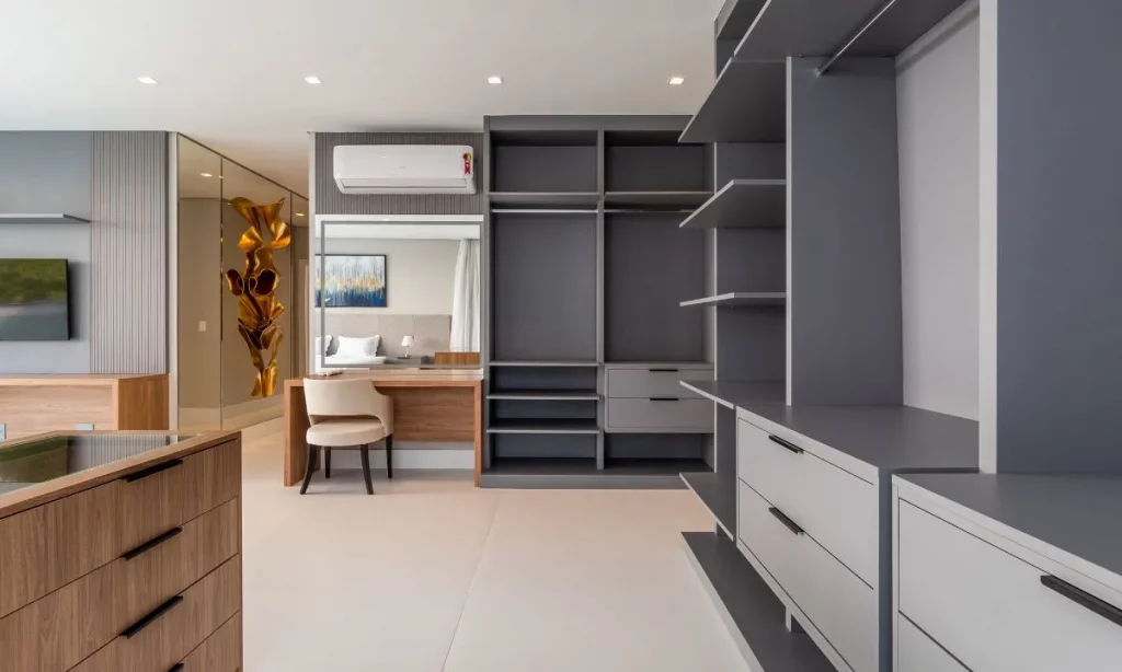 A Luxury Safira é um ícone de sofisticação e elegância com seus impressionantes 1.256 m² de área construída. A casa possui quatro suítes, sendo que a suíte master, com quase 100 m², é projetada para oferecer conforto e privacidade em espaços dedicados para “ele” e “ela”.