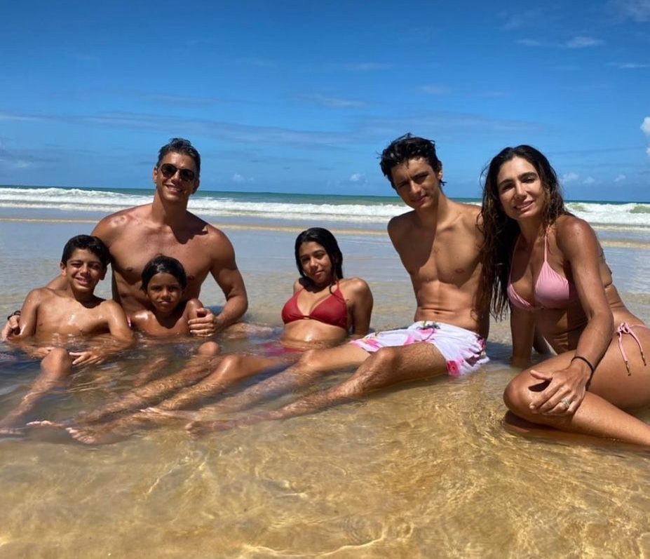 Marcio Garcia aparece ao lado da família em praia paradisíaca na Bahia
