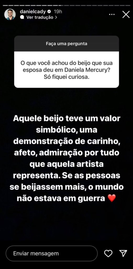 Ivete Sangalo deu um selinho em Daniela Mercury durante a apresentação em comemoração aos 40 anos de carreira da artista, que aconteceu na Marquês de Sapucaí, na Apoteose, no Centro do Rio, em outubro. No último domingo (5), o nutricionista e marido de Veveta, Daniel Cady, deu a sua opinião sobre o beijo.