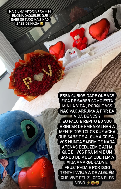 Para finalizar, o artista esclareceu que o buquê de flores foi apenas uma demonstração de carinho em comemoração ao 1º mês de casamento, sem qualquer relação com os rumores de traição. Ele enfatizou a confiança e o respeito que sustentam seu relacionamento com Viviane Noronha, enquanto criticou aqueles que baseiam suas relações em desconfiança.