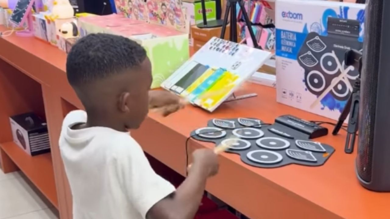 Menino de 8 anos dá show com bateria, impressiona loja e viraliza nas redes