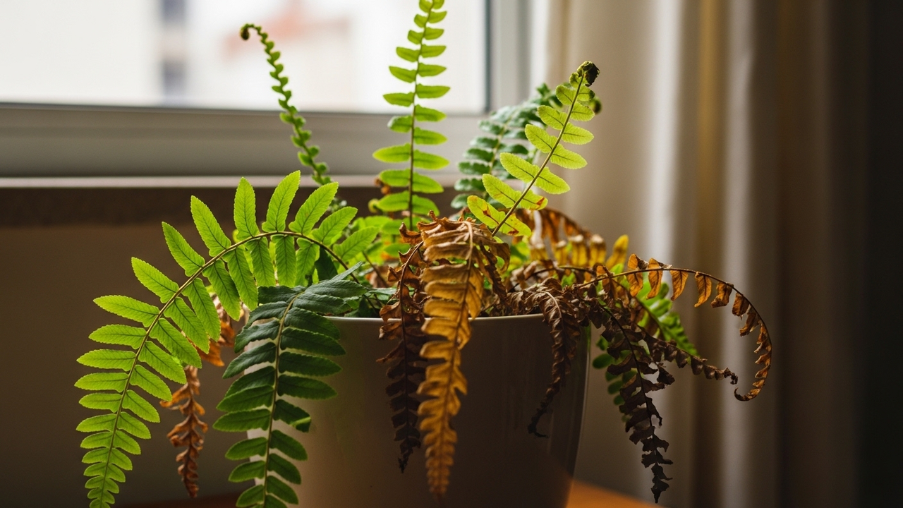 A samambaia-americana parecia sem vida, com folhas secas e sem reação.