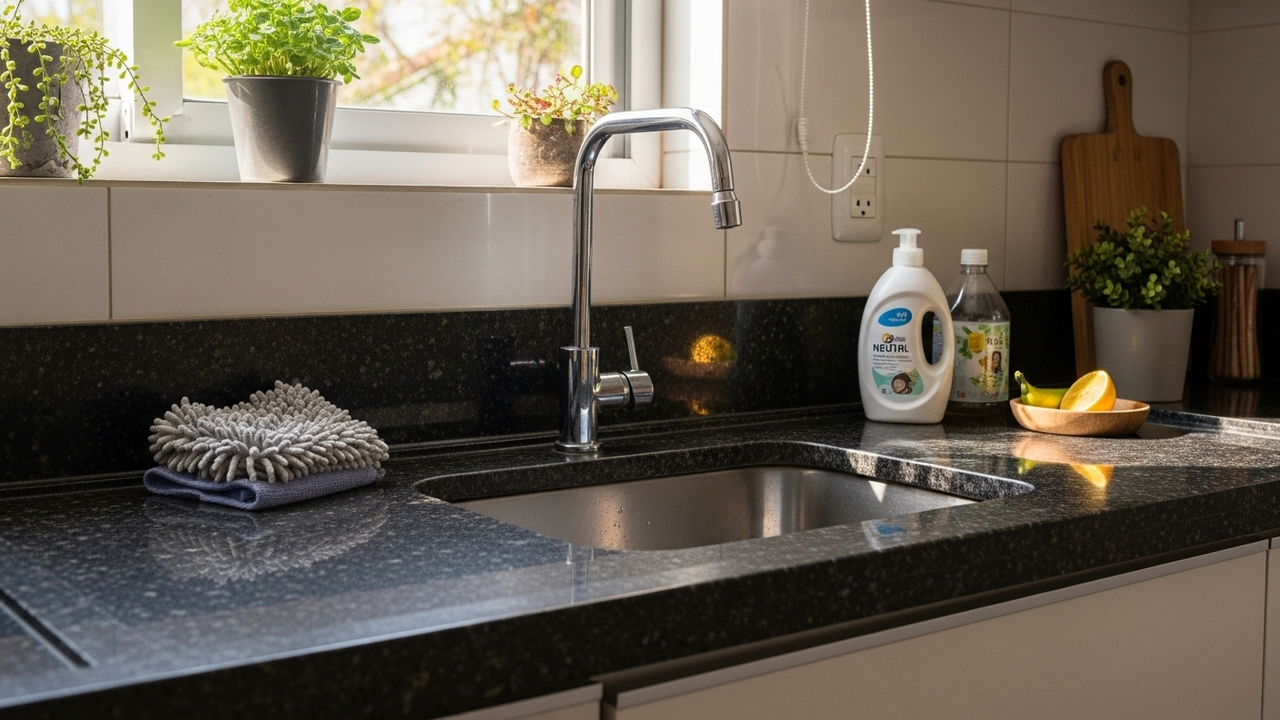 Qual é o passo a passo seguro para limpar a pia de granito?