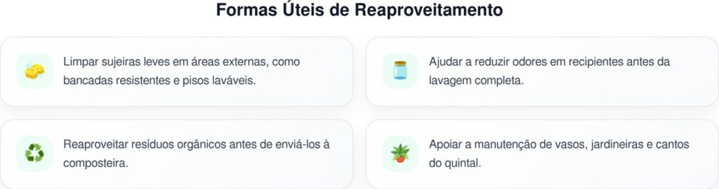 O interesse também vem do aproveitamento doméstico. Em vez de jogar a casca fora, muita gente prefere transformá-la em insumo para o jardim. O vinagre entra como componente líquido da receita, mas não deve ser tratado como fertilizante completo. Ele precisa ser usado com moderação, especialmente perto de plantas sensíveis.