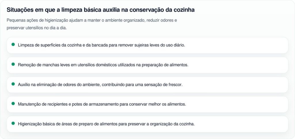 Na rotina de limpeza doméstica, essa solução caseira contribui para a manutenção da cozinha, favorecendo a desinfecção leve e a eliminação de odores persistentes. A mistura também ajuda a manter o ambiente mais organizado e funcional.