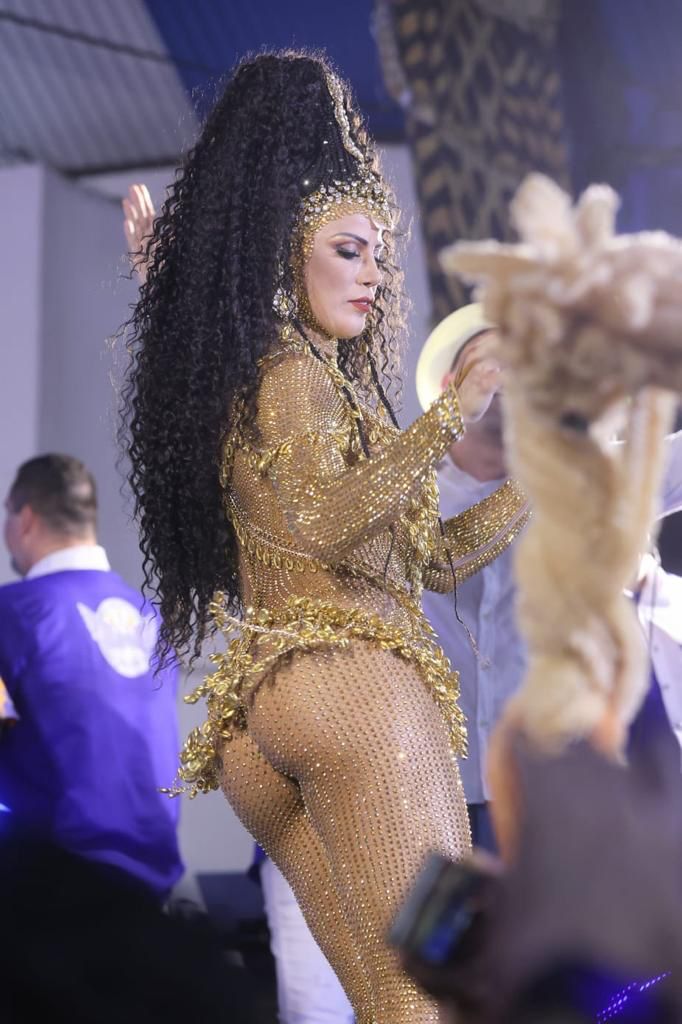 O carnaval ainda demora um pouco a chegar, mas musa que é musa brilha o ano inteiro. A máxima cabe bem à musa da Portela, Alice Alves, que foi um dos principais destaques da noite desta sexta-feira, 06, quando a agremiação se reuniu para a grande final do seu samba-enredo para o carnaval 2024. A beldade esbanjou na escolha do look, apostando num macacão bem sensual, com 30 mil cristais e cerca de três quilos de búzios dourados.