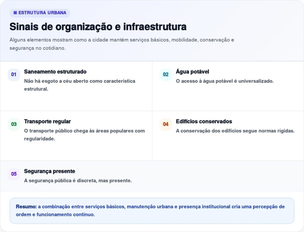 O caso suíço mostra que desigualdade de renda não precisa resultar automaticamente em abandono urbano. Um bairro pode ser simples, denso e popular sem perder saneamento, segurança, transporte e manutenção. A diferença está na presença contínua de políticas públicas e na forma como a cidade distribui infraestrutura.