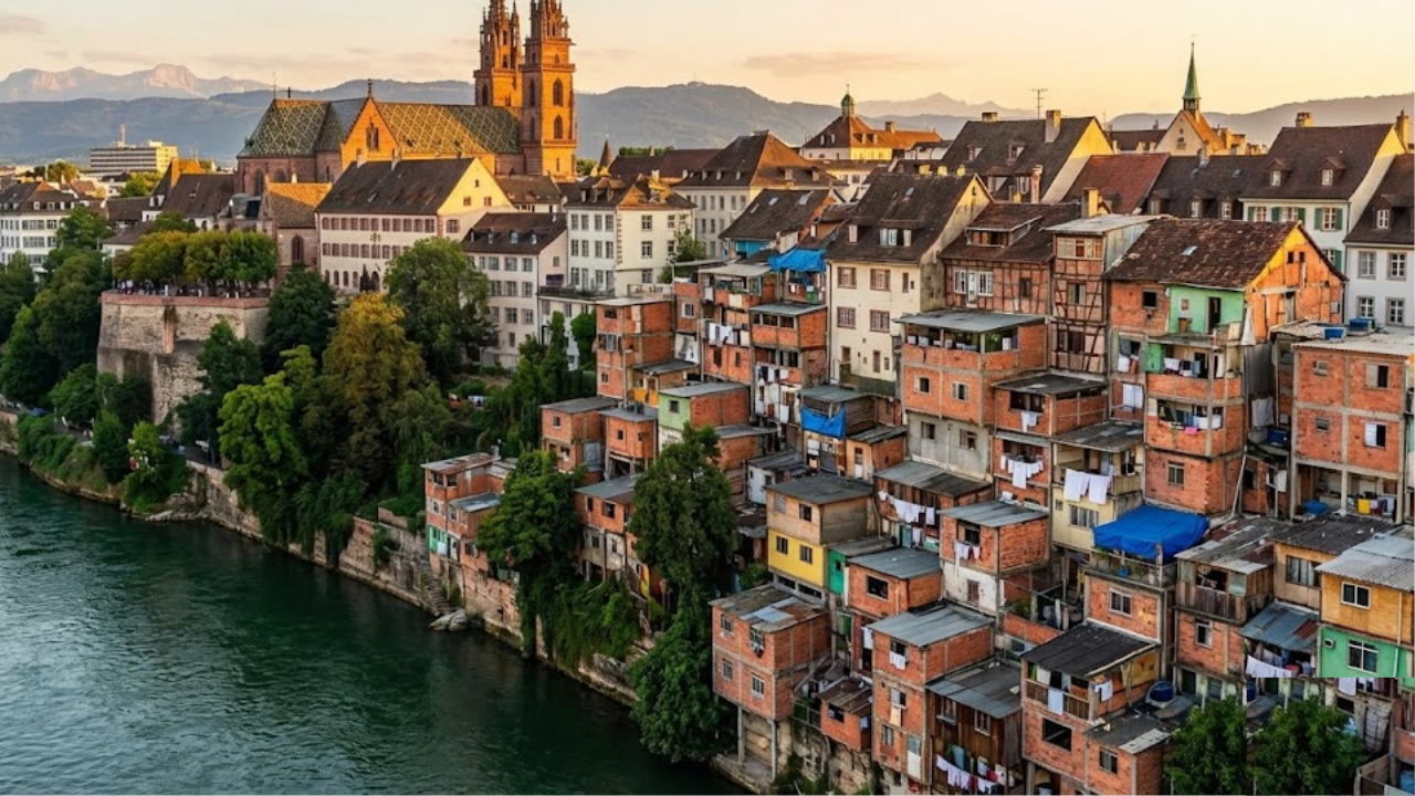 O termo “favela” é utilizado nas plataformas digitais como uma hipérbole para descrever zonas de alta densidade demográfica e estética funcional, distantes dos chalés alpinos turísticos. A diferença real entre um bairro nobre e uma zona operária em Basileia reside na metragem dos apartamentos e no design das fachadas, é raro na ausência do Estado ou precarização de serviços.