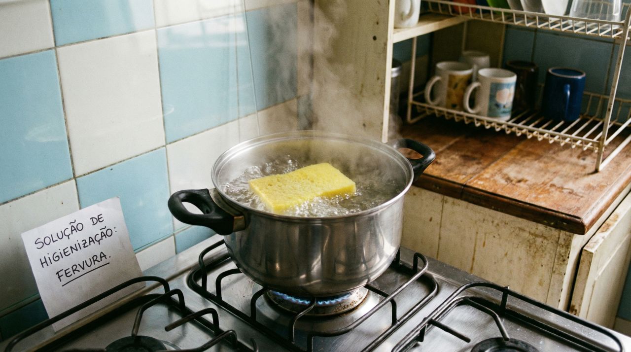 O processo de higienização térmica é rápido e pode ser incorporado facilmente à rotina semanal. Basta utilizar uma panela com água suficiente para cobrir totalmente a esponja. Quando a água atingir o ponto de ebulição, o calor intenso começará a agir diretamente contra os microrganismos.