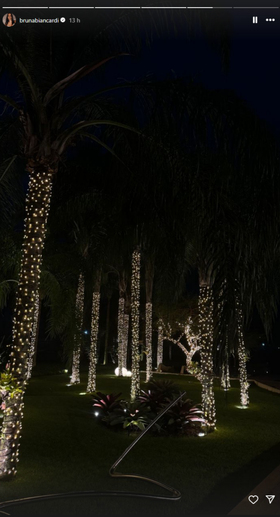 Nas redes sociais, Biancardi exibiu elementos que dão vida e cor ao espaço, incluindo luminosas e cintilantes ornamentações que adornam o jardim, além de diversas árvores de Natal espalhadas pela casa, cada uma com um toque único que reflete a exuberância e o espírito natalino.