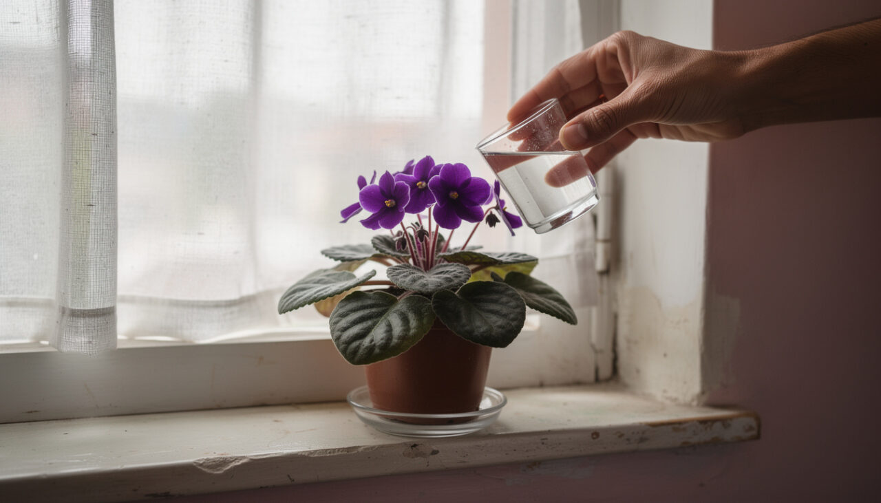 Os cuidados básicos com a violeta-africana em vaso foram, para mim, um aprendizado feito de tentativa e erro. Logo no início, quase cometi um dos erros mais comuns: deixar o vaso diretamente no sol forte. Em poucos dias, as folhas começaram a ficar ressecadas nas bordas, e então descobri que o sol direto queima a folhagem aveludada, que prefere luz indireta e temperaturas amenas.