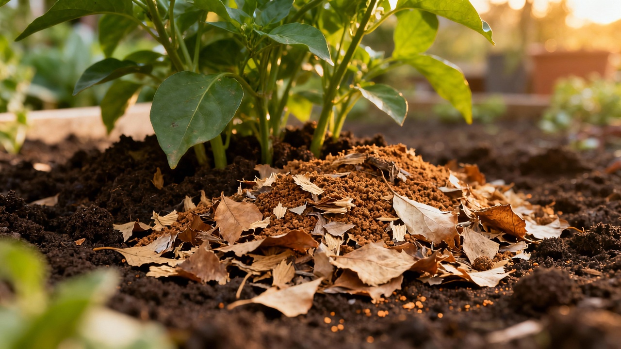 - Distribuir o adubo natural em volta da planta, enterrando levemente, para melhor incorporação e menor perda de nutrientes.