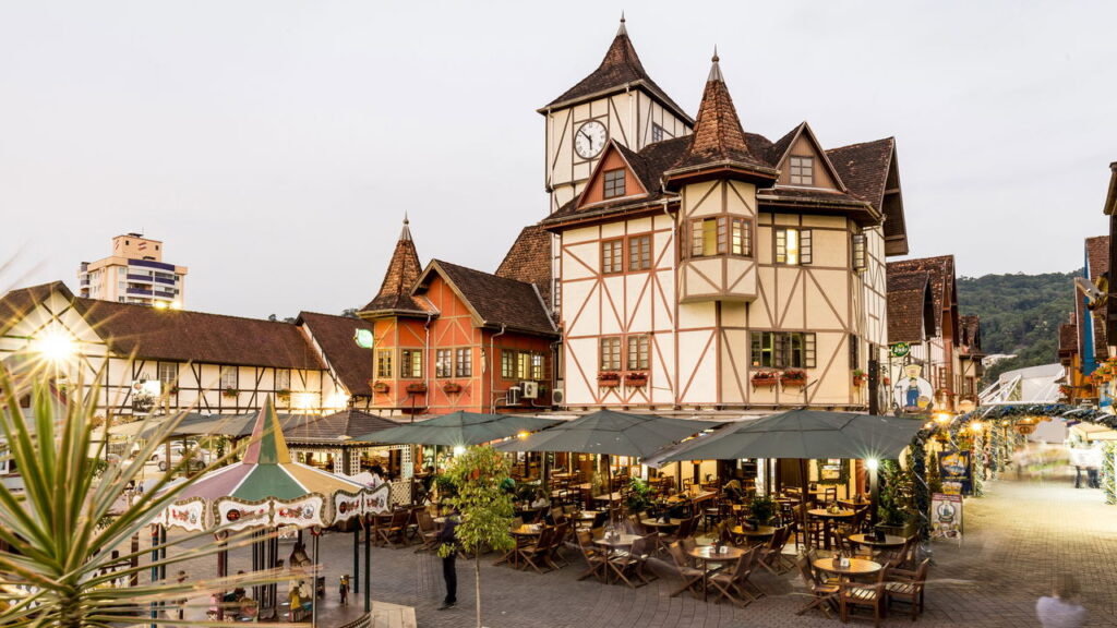 A Vila Germânica é outro ponto imperdível, especialmente durante a Oktoberfest, quando o local se transforma em um verdadeiro centro de celebrações germânicas. Além disso, a Rua XV de Novembro é uma das principais vias comerciais e turísticas, com lojas, restaurantes e uma arquitetura de estilo germânico.