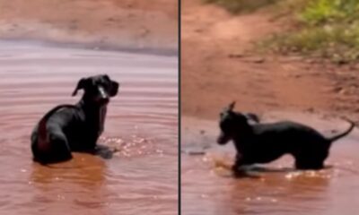 Uma poça de água se transformou no melhor brinquedo para Alfredo, um cachorrinho que decidiu aproveitar o momento sem pensar duas vezes. A cena mostra o...