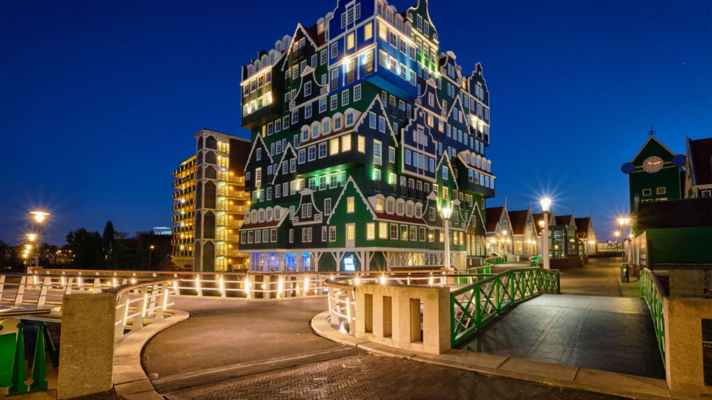 Encravado nas proximidades de Amsterdã, o Inntel Hotel Zaandam se tornou um ícone graças ao seu design arquitetônico inusitado. Projetado por Wilfried van Winden, o edifício é famoso pelas suas fachadas multicoloridas, reminiscentes de blocos de construção infantis, algo que chama a atenção de turistas e moradores.