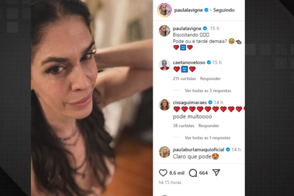 Paula Lavigne posa nua aos 56 anos: “Pode ou é tarde?”; Caetano Veloso responde