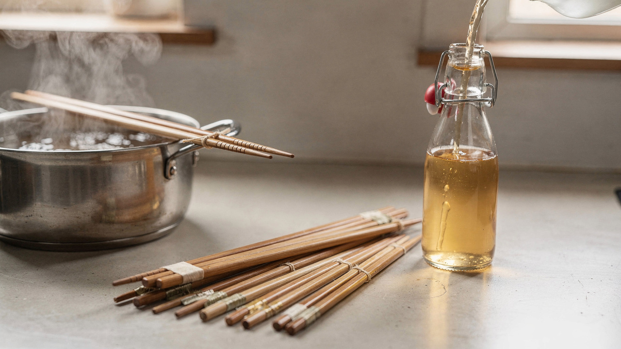 Outro uso simples envolve garrafas sem bico dosador: ao colocar um palito de madeira no gargalo, o fluxo do líquido fica mais controlado, diminuindo a chance de derrames. Além disso, os hashis podem servir como pinças improvisadas para virar pequenos alimentos quentes, como pedaços de carne, legumes ou frituras, mantendo as mãos afastadas da alta temperatura.