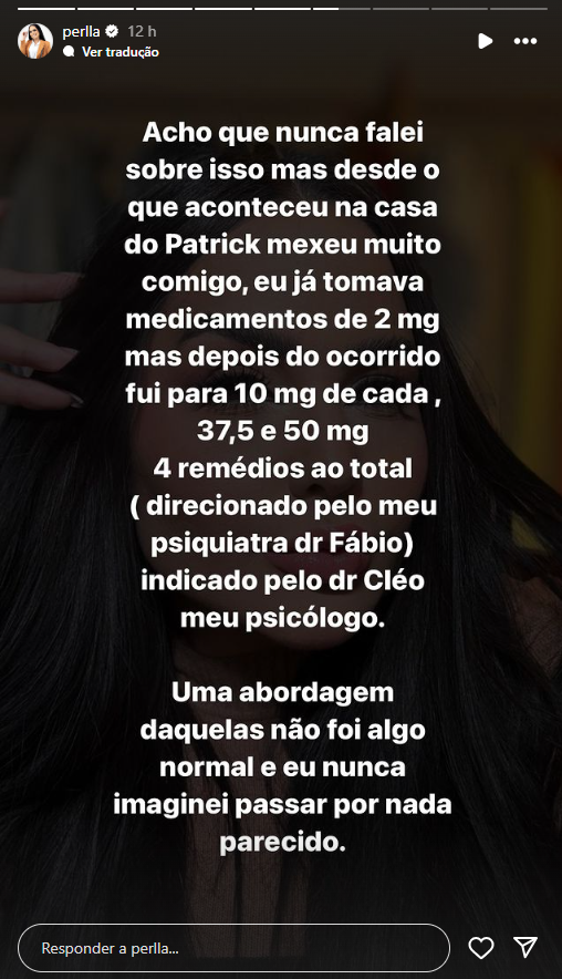 “Domingo, abri uma live e tenho recebido mensagens sobre isso. Foi uma live compartilhando meu coração. Quem me conhece sabe que sou bem reta e direta em tudo que faço, às vezes até demais. Agradeço a cada mensagem recebida, principalmente de preocupação, pois estava claro que não estava em sã consciência”, disse Perlla em sua publicação.
