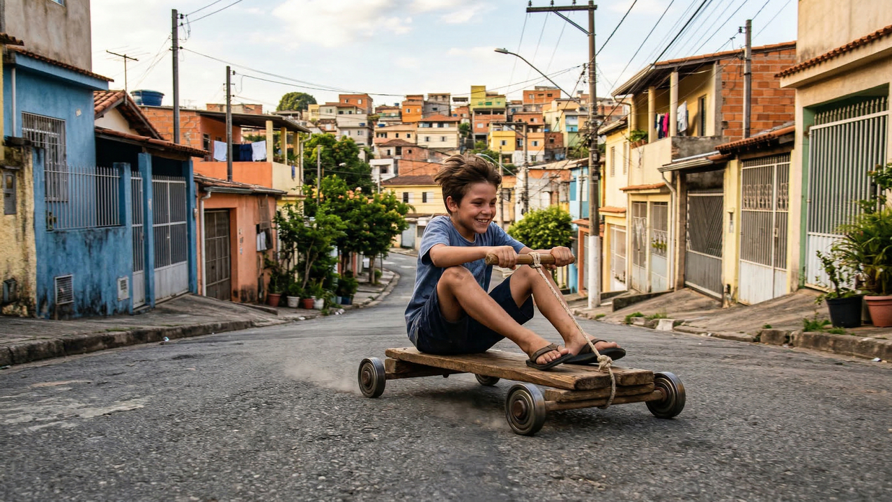 Em muitas cidades brasileiras, a lembrança de descer uma ladeira em um carrinho de rolimã ainda aparece com nitidez na memória de quem cresceu nas décadas passadas. A cena costuma ser a mesma: rua pouco movimentada, pedaços de madeira reaproveitados, rolamentos velhos de oficina e um grupo de crianças disputando quem chegava primeiro ao final do percurso. Esse tipo de diversão simples, sem necessidade de dinheiro, marcou uma geração e ainda hoje é associado à sensação de liberdade, criatividade e convivência coletiva na infância.