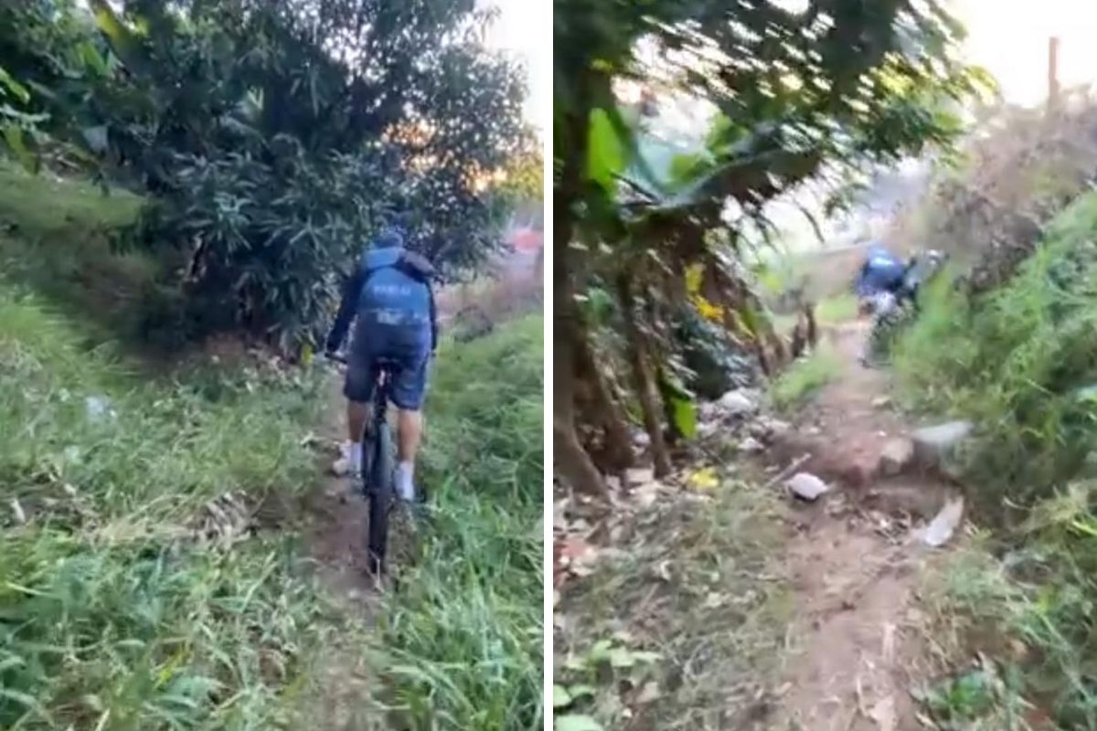 Durante um passeio de bicicleta por uma trilha fechada, um casal viveu uma cena digna de comédia. A mulher alertou o marido sobre o risco de queda devido ao terreno acidentado, mas o aviso parece ter chegado tarde demais — ou ter sido completamente ignorado.
