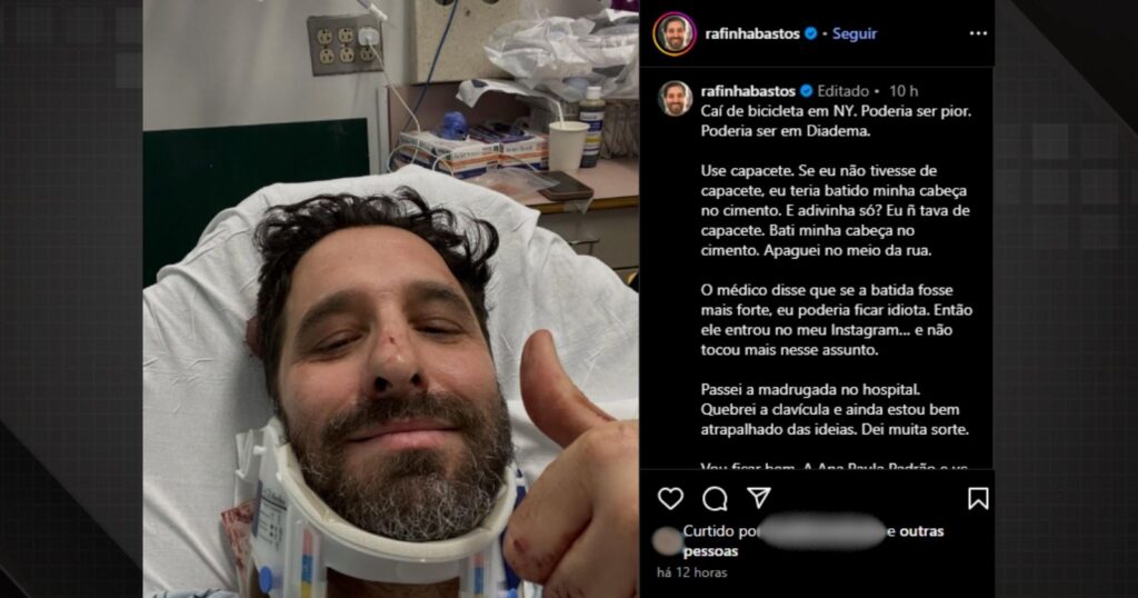 Com bom humor, o apresentador também fez um alerta sobre segurança: “O médico disse que se a batida fosse mais forte, eu poderia ficar idiota. Então ele entrou no meu Instagram… e não tocou mais nesse assunto”.