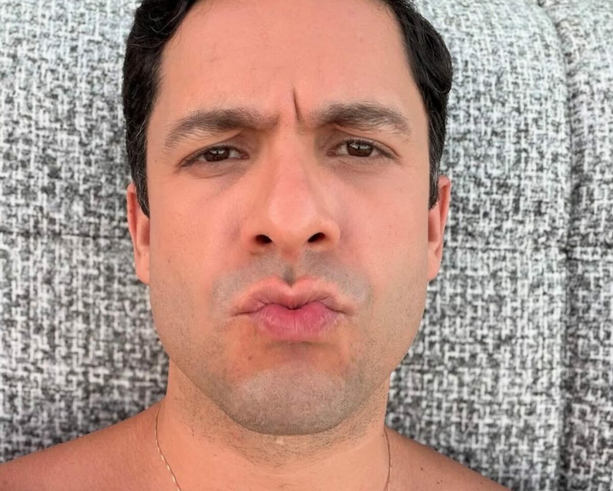 Rainer Cadete exibe peitoral peludo na praia e recebe elogios ousados