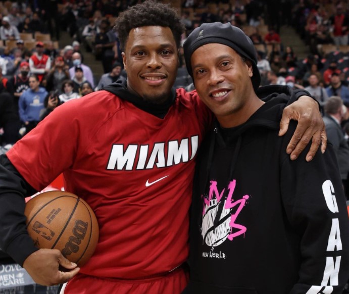 Ronaldinho Gaúcho esteve em Toronto, no Canadá, para assistir ao jogo da NBA entre os Raptors e os Miami Heat.