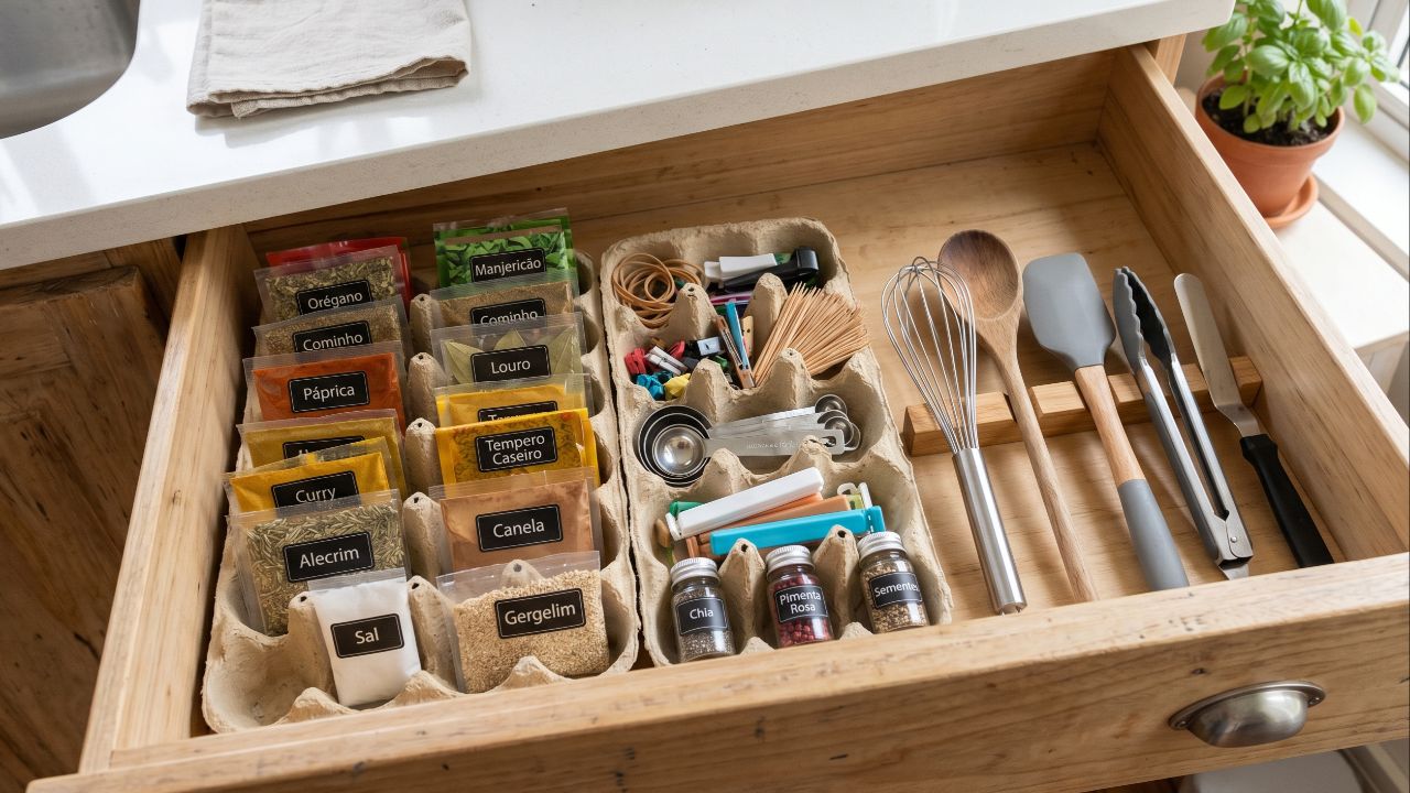 Quem costuma comprar ovos em quantidade geralmente acaba acumulando as caixas depois de esvaziar a embalagem, e transformar esse material em um organizador de cozinha com caixa de ovos é uma forma simples de economizar, ganhar espaço e ainda contribuir com o meio ambiente, já que o papelão prensado se adapta bem para guardar miudezas, manter gavetas arrumadas e reduzir o volume de resíduos jogados fora.