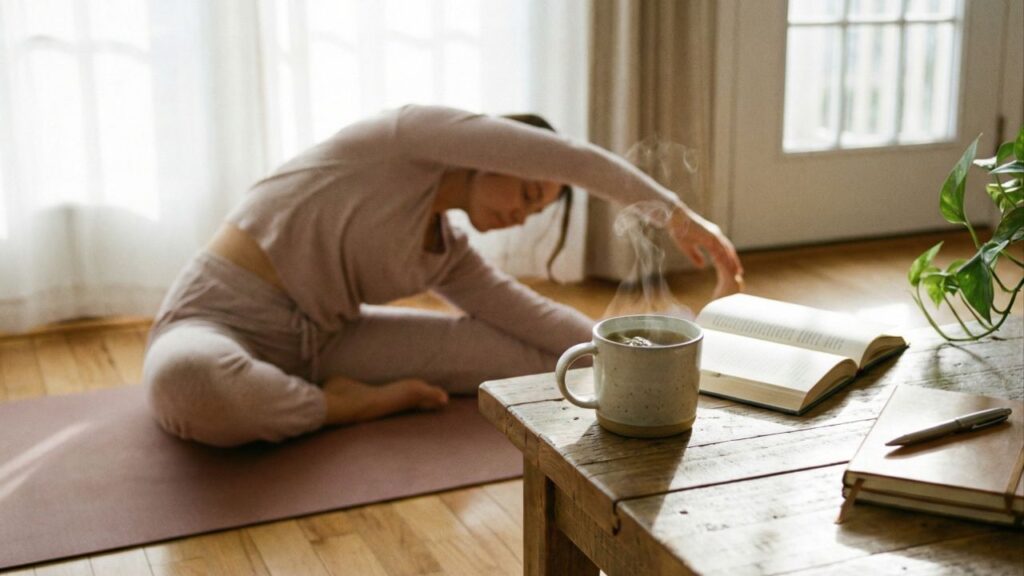 Para organizar uma manhã de autocuidado, muitas pessoas seguem uma lógica simples, adaptando o tempo disponível. A ideia é criar uma pequena sequência que una movimento leve, bebida quente e um cuidado corporal ou olfativo.