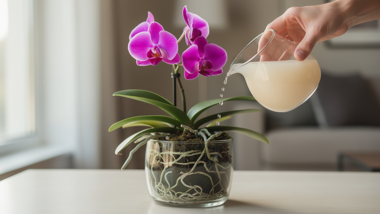 Para melhorar a floração, muitos especialistas em jardinagem recomendam enriquecer a água da rega com nutrientes leves e naturais. Essa prática fortalece a absorção e melhora o metabolismo das orquídeas.