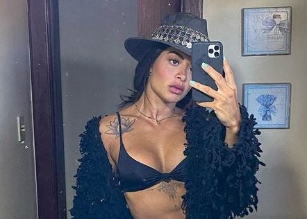 Aline Riscado usou as redes sociais para publicar uma foto de biquíni no banheiro, na noite deste sábado (06).