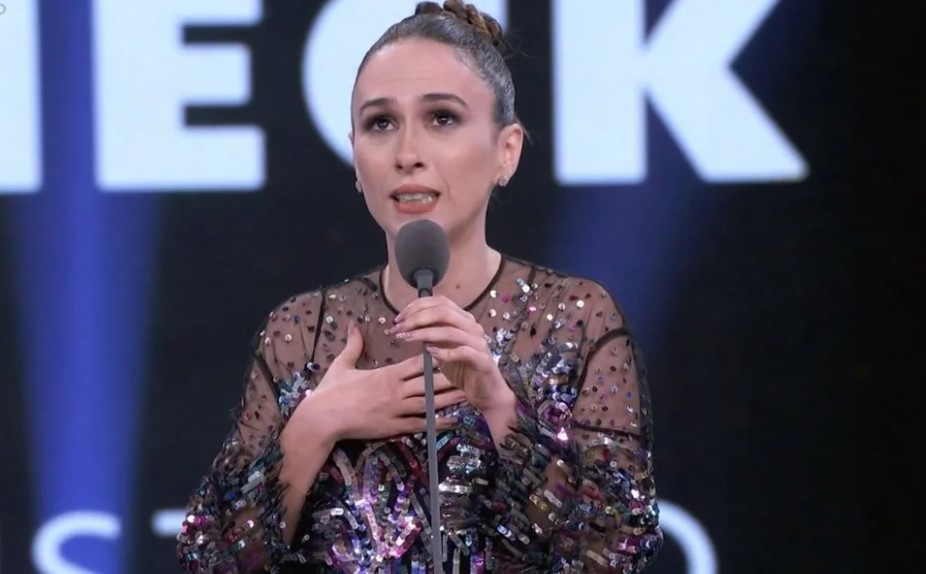 Tatá também aproveitou para dar o troféu para Déa Lúcia, mãe de Paulo Gustavo. A iniciativa de Tatá emociono o público.