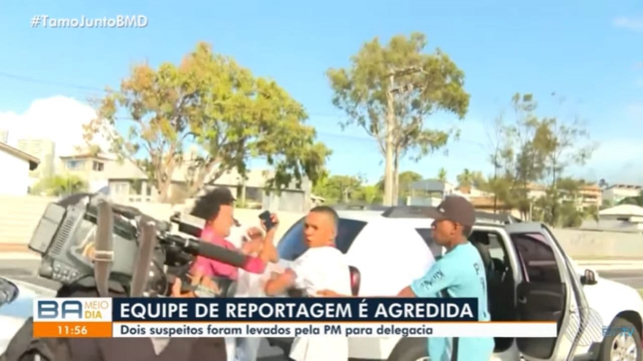 Ela completou enquanto as imagens das agressões eram exibidas. “A Polícia Militar afirmou que conduziu duas pessoas à delegacia e a Polícia Civil disse que o caso foi registrado na 12ª delegacia de Itapuã. Aqui eu deixo minha solidariedade aos jornalistas por esse lamentável incidente”.