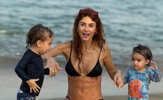 Thaila Ayala posa com os filhos e encanta seguidores com corpão sarado na praia