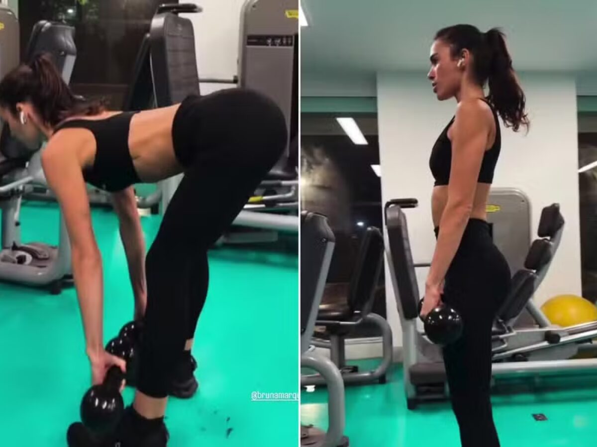 Mesmo com a rotina cheia de compromissos, Bruna Marquezine, de 30 anos, fez questão de reservar parte da noite de segunda-feira (2) para cuidar do corpo. A atriz apareceu treinando em uma academia usando conjunto preto justo, composto por calça e top, que evidenciava o abdômen definido. Focada nos exercícios, ela demonstrou disciplina e também chamou atenção pela flexibilidade durante os movimentos.
