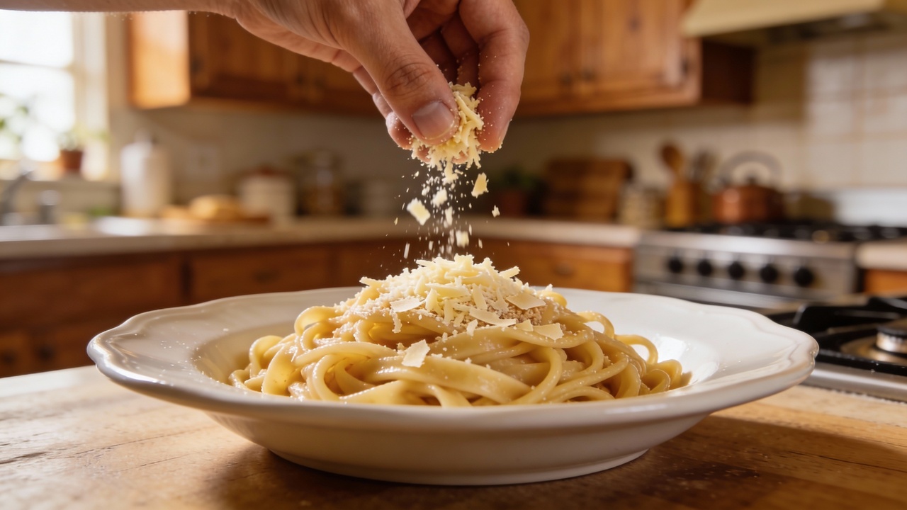 Um ingrediente discreto que faz o prato parecer finalizado com queijo