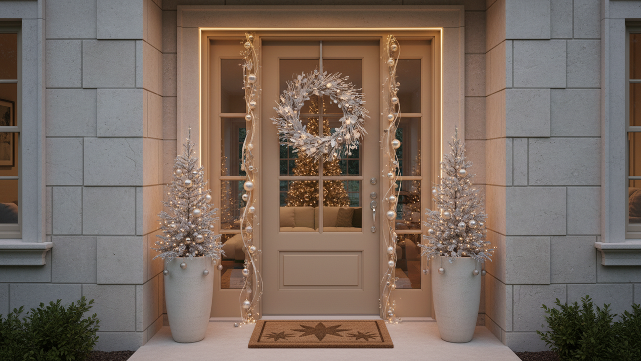 Para orientar escolhas práticas, alguns recursos se destacam como aliados na criação de um cenário natalino discreto e contemporâneo em torno da porta bege: