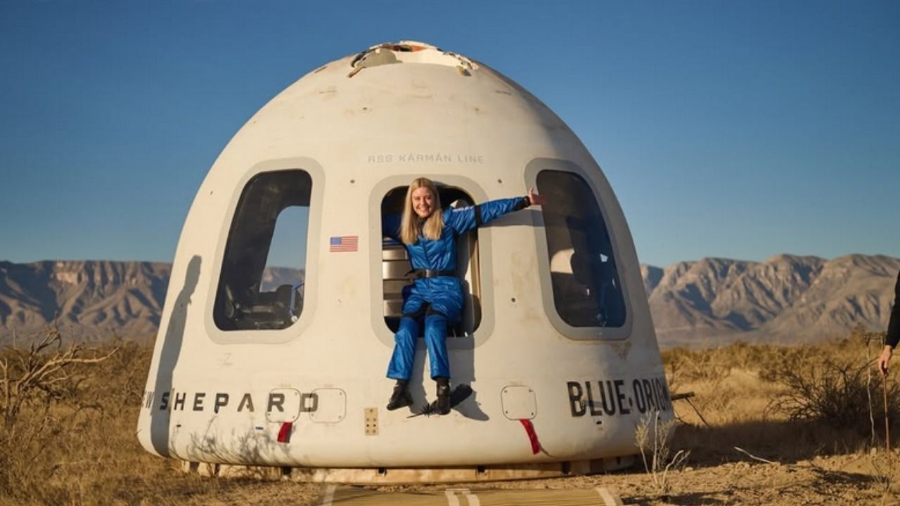 A viagem foi realizada a bordo de uma cápsula New Shepard, lançada no oeste do Texas, nos Estados Unidos.
